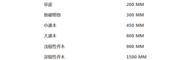 一般应满足以下植物生存的最小土层厚度要求,根据土层厚度来确定植物的具体种植范围。