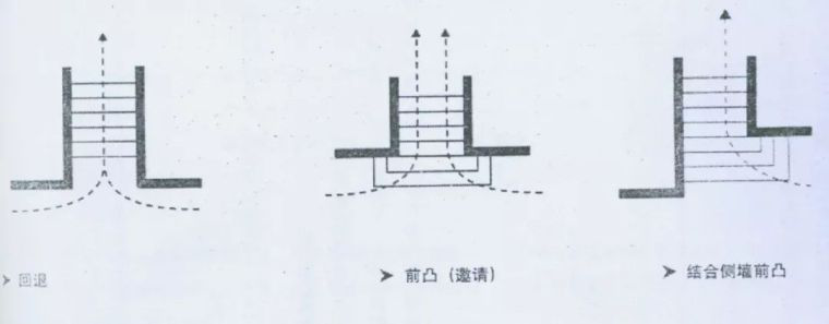 台阶以为着强烈的指向。在台阶上下的区域应当做特殊处理以表明方向的改变。因此,建筑边沿的台阶应当向前延伸(公共性、邀请感)或者向后退缩(私密性、限制感),其他景观看见宜同。