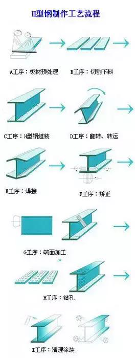 2、H型钢属于高效经济裁面型材(其它还有冷弯薄壁型钢、压型钢板等),由于截面形状合理,它们能使钢材更高地发挥效能,提高承裁能力。不同于普通工字型的是H型钢的翼缘进行了加宽,且内、外表面通常是平行的,这样可便于用高强度螺栓和其他构件连接。其尺寸构成合理系列,型号齐全,便于设计选用。(除了吊车梁用工字型钢)
