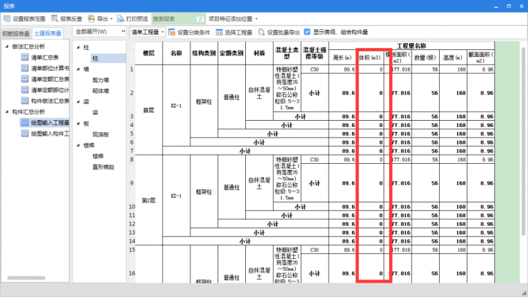原因二:工程中定义的柱子的砼标号是C35的,但是混凝土墙的砼标号是C30的。查看计算式,柱子体积有量,现在把柱子砼标号改为C30的,然后重新汇总计算一下即可;
