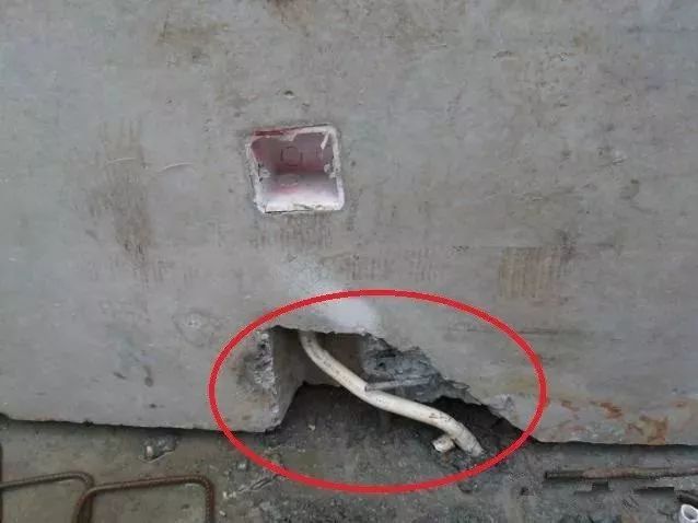 现场发现部分预制构件预埋管缺少、偏位等现象,造成现场安装时需在预制构件凿槽等问题,容易破坏预制构件