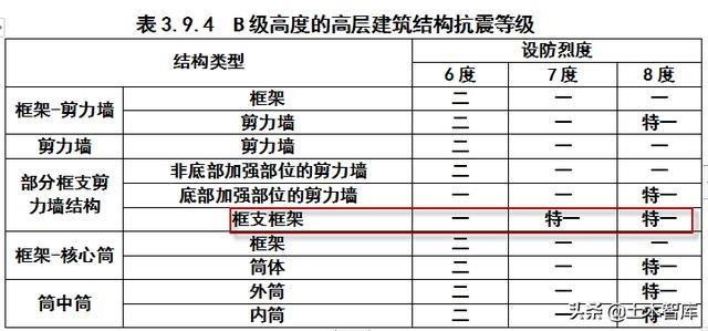 查看抗规关于框支转换结构的抗震等级,如图2所示,可知,框支框架的抗震等级仅仅有抗震等级一级与二级,无其他抗震等级,因此,水平转换构件地震内力的放大只放大一级与二级。