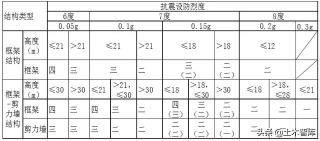 另外异形柱规程中3.3.1节中给出了框架及框架剪力墙的抗震等级,如下图6所示。
