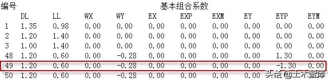 针对该框支转换梁进行手工校核,从图12框支梁结果可知,该梁I端对应组合号为49,该组合的具体构成情况如下图13所示: