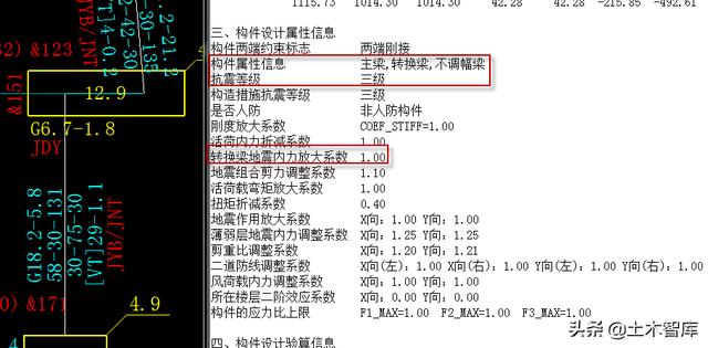 从以上的校核可以看到,对于规范要求的特一级、一级、二级转换构件,程序会自动考虑地震作用的内力调整,不用人为干预放大系数。