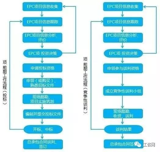 工程总承包项目前期,指的是从项目信息跟踪开始,参与投标报价(或竞争性谈判),合同谈判直至总承包合同签订一系列工作完成的过程(以下简称项目前期)。