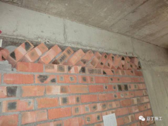 斜顶砖应组砌密实,角度宜为4560度,当墙体较长时应采用倒八字双向砌筑,中间部位采用成品三角块放置。