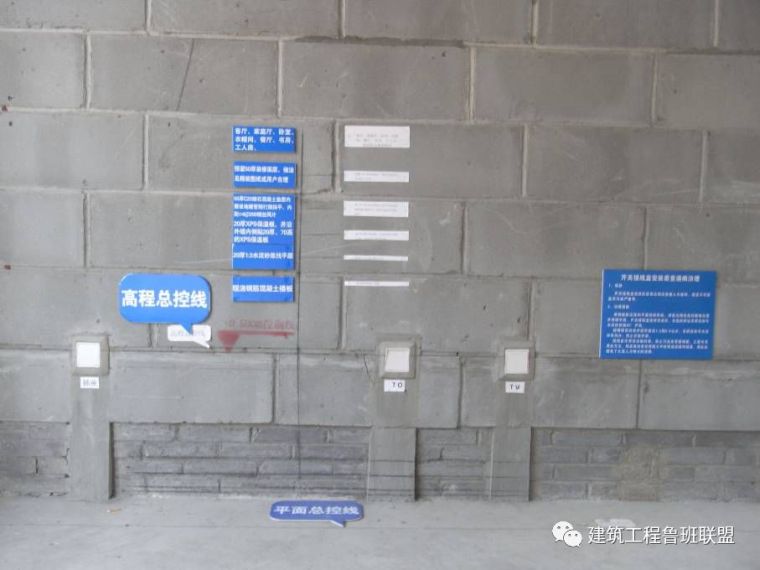 施工总控线应设置在公共区域走廊,避免后期砌筑墙体后其他专业不通线。根据楼层总控制线,依此线弹放墙体20控制线,墙体定位线。楼梯间走道一侧墙面为建筑1米线控制线。