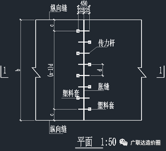 图3. 胀缝平面图 传力杆间距d=300mm