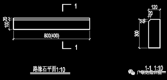 图9. 路缘石平面、剖面图