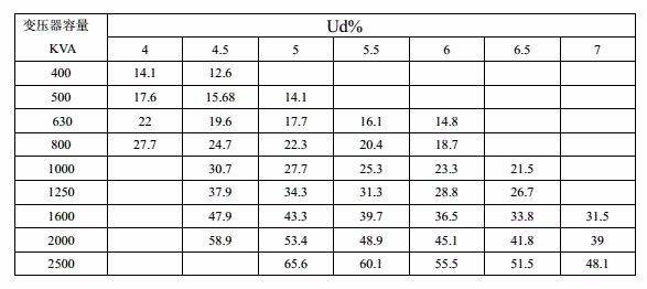 (2)变压器低压出口三相短路电流为容量的150倍除以变压器短路阻抗百分数(精确时为144倍)