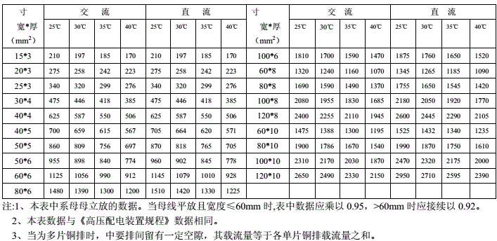 (5)单片母线的载流量(A)e=70K,环境温度为40℃