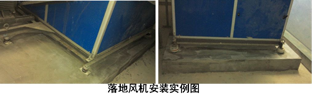 3.1.3风机安装在有减振器的基础上时,地面要平整,各组减振器承受的荷载压缩量应均匀, 高度误差小于2mm,不偏心。