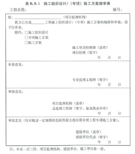 一、施工组织设计/(专项)施工方案报审表(B.0.1)