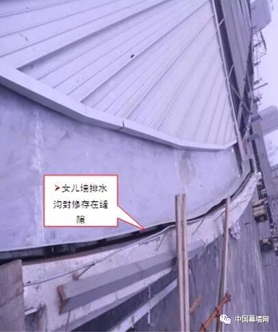 8、幕墙结构漏水主要部位一般是在采光顶,女儿墙以及不同结构和界面的交接部位,譬如铝板与石材交接部位、单元板块十字接缝、幕墙翻窗和雨篷排水沟边缘等都是重点管理和检查部位。