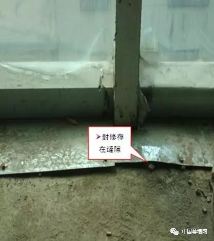 1、幕墙系统水密性、气密性能不符合要求(结构漏水、漏风),如图: