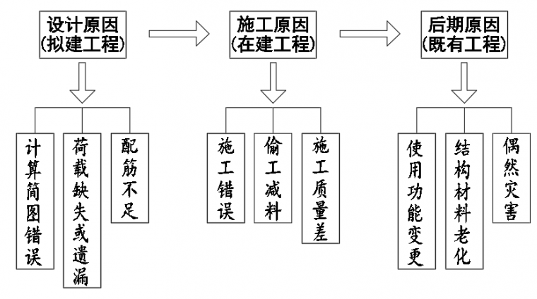 导致建筑结构需要进行加固改造的原因很多,大体可分为设计原因、施工原因和后期原因。设计原因表现为项目在设计时出现错误,如计算简图不符、荷载缺失或漏算、配筋不足等;施工原因表现为施工单位错误理解施工意图导致的施工错误、偷工减料、施工质量差等引起的结构安全隐患;后期原因则是最常见的原因,主观意义上表现为需要变更使用功能,客观原因则表现为结构材料老化、建筑经历偶然灾害等。