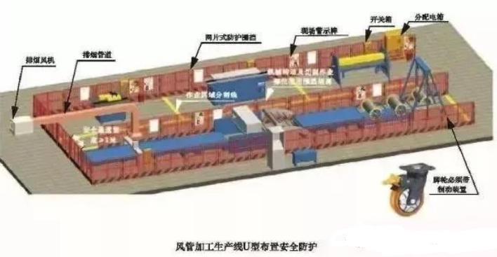 1.加工区域使用高度为1200mm的网片式防护栏杆进行隔离。加工区域可按U 型或一字型进行布置。