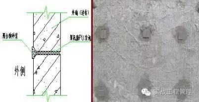 在进行外墙抹灰以前,须专人负责采用膨胀水泥砂浆分内外两层对对拉螺杆的洞口先进行堵漏,确保洞口密实。