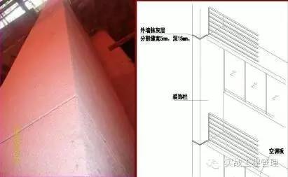【说明】外墙抹灰设置分割缝以控制温度引起的裂缝。