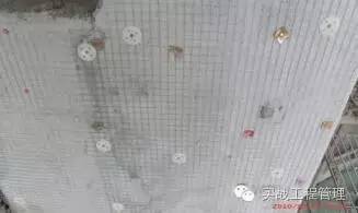 针对外墙抹灰的抗裂层采用锚栓固定钢丝网,钢丝网满挂。