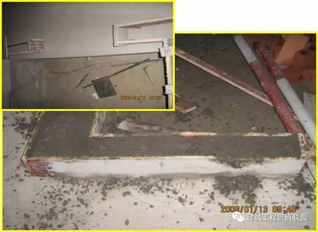 Q7构造柱喇叭口处混凝土一次性浇筑不到位,且不密实,存在严重质量缺陷。