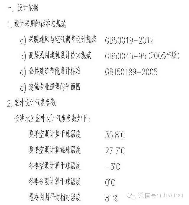 设计说明部分介绍设计概况和暖通空调室内外设计参数;冷源情况;冷媒参数;空调冷热负荷、冷热量指标,系统形式和控制方法,说明系统的使用操作要点等内容。