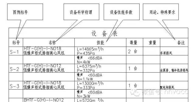 b. 图例标号:在图纸当中,设备一般都用抽象的方框、圆等图形来表示,仅以图例标号来表示该设备属性,所以在阅读设备表的同时,最好能够记忆图例标号所代表的设备,以便后期阅读图纸时,能够更加快捷、高效;同时也利于后期阅读图纸时,能够顺利根据图例标号查找到该设备的名称及参数。