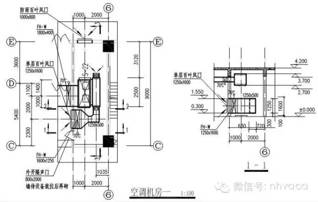 空调机房是风管与设备连接交叉复杂的部位,在平面图表达不清时就通过机房安装详图来体现。