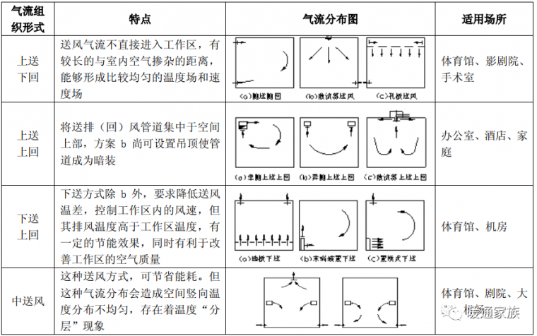送回风形式设计一定要使空调区域空气能得到有效的循环,对于大跨度、高空间场所,应采用上送下回、中送下回的气流组织形式,风口类型根据送回风形式进行选择。