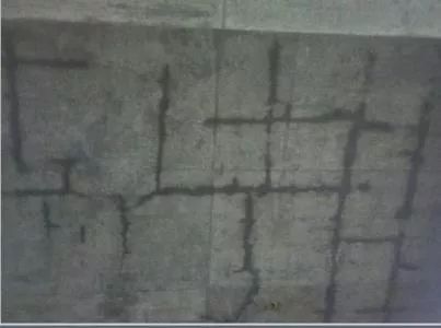混凝土收缩裂缝的特点是大部分属表面裂缝,裂缝宽度较细,且纵横交错,成龟裂状,形状没有任何规律。