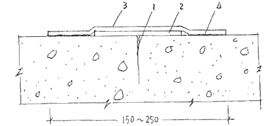 1裂缝 2油毡或塑料隔离层;3聚丁橡胶密封条;4粘结剂
