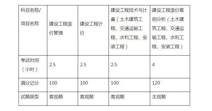 《建设工程造价管理》(客观题)、《建设工程计价》(客观题)、《建设工程技术与计量》(客观题)和《建设工程造价案例分析》(主观题)4个科目。其中 《建设工程造价管理》和《建设工程计价》为基础科目;