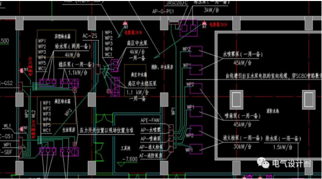 说明中往往写明设两台变压器,单母线分段运行,但如何分配,并无详述,出现系统图回路凌乱的情况,系统图中供电回路分布应根据用电管理、计费、负荷等级、防火分区综合布置。