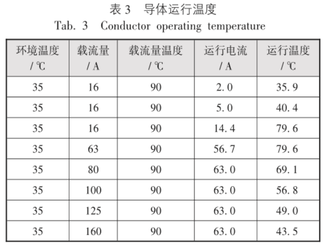 根据式(4)对实际电流达不到额定电流的导体温度进行计算,结果见表3。