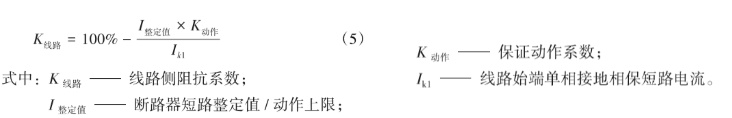其实式(5)的计算方法和组合法的想法是非常接近的。对于非第一级配电线路,如果可以获取断路器处的单相接地相保短路电流,也可以用同样的公式计算。当前段线路达到最大长度时,非第一级配电线路的线路侧阻抗系数也可以用类似的思路按下面的公式计算: