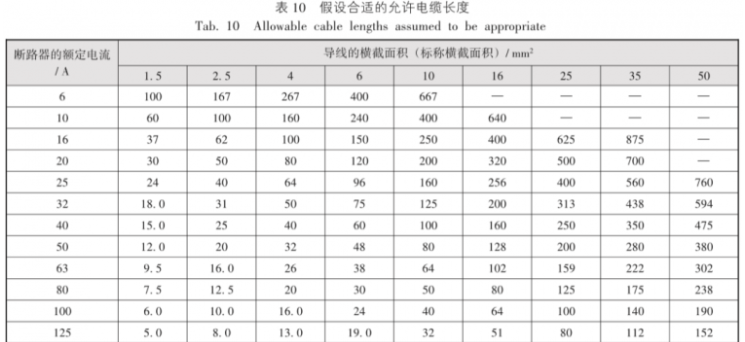 GB 50054 - 2011对TN - S系统配电线路或仅供给固定式电气设备用电的末端线路的间接接触防护电器切断故障回路的时间不宜大于5 s,所以对一般配电线路来说,要求电缆小于最大允许长度是没有必要的。但采用单磁断路器做配电线路保护的情况,电缆实际长度大于最大允许长度不是0.4 s或5 s内能不能切断的问题,而是一直无法切断的问题。