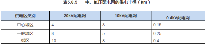 GB 50613-2010《城市配电网规划设计规范》:根据供电负荷和允许电压损失确定的中、低压配电网供电半径不宜超过表5.8.5所规定的数值。