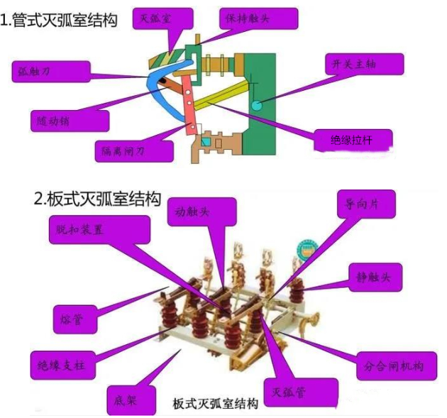 产气式负荷开关的灭弧室有管式和板式两种结构。
