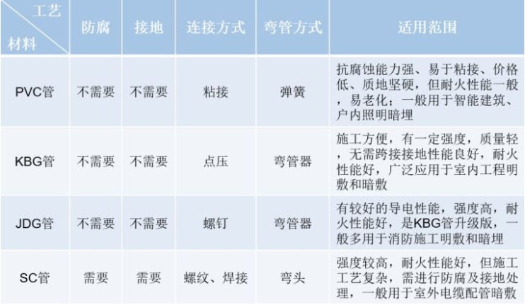 JDG管的施工工艺与KBG管基本相同,只是线管的壁厚及连接方式不同;JDG管管壁较KBG管厚,在使用JDG管时必须配套使用相对应的管件,不得使用KBG管管件替代。