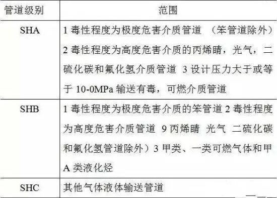 在石油化工装置中,不同操作参数和输送介质性质的的管道差别很大,其重要程度和危险性也不同,为更好的保证管道在运行过程中的可靠性和安全性,对重要程度不同的管道提出不同的设计、制造和施工要求。所以对管道分级是必要的。
