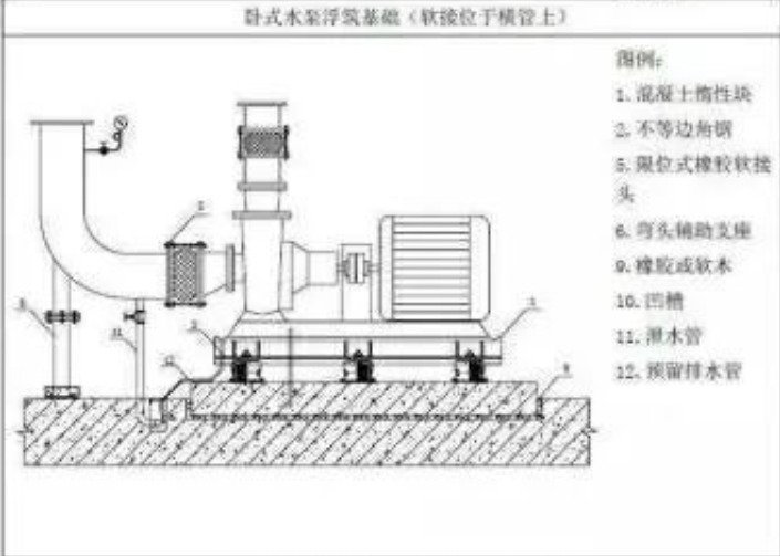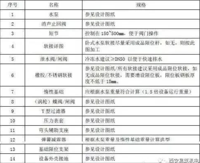 1.水泵固定螺栓及弹簧减震器固定螺栓设置安装时,必须保障所有螺栓安装便于检修拆卸;