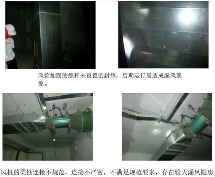 4、风管柔性短管不宜过长,一般为150-300mm,连接处合缝应严密、牢固、可靠;