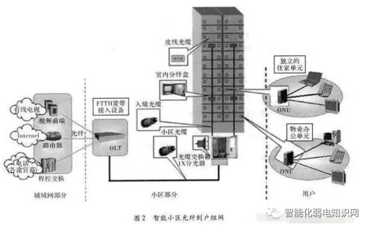 光纤到户为小区搭建起一个具有高带宽、可扩展和多业务承载的开放性数字化接入网平台,其不仅可实现电话、数据和有线电视信号的接入,满足用户对固定电话、数据宽带和有线电视的自由选择及接入需求。