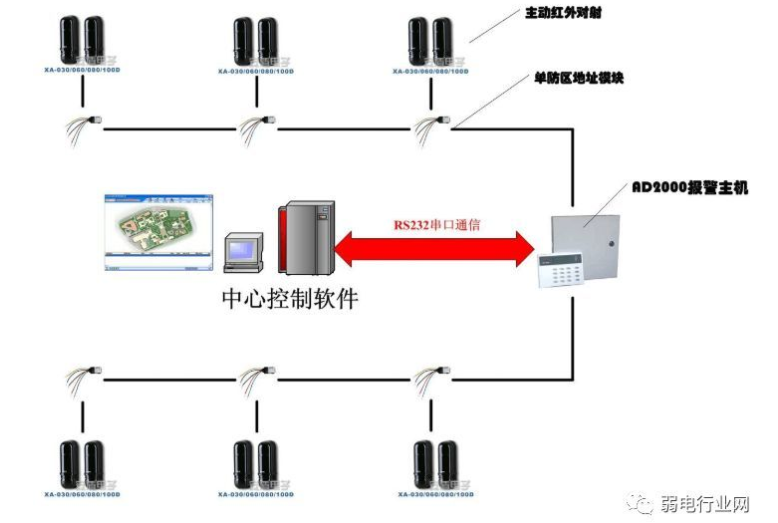 总线主机与红外对射接线示意图