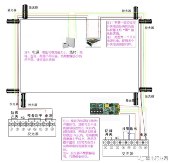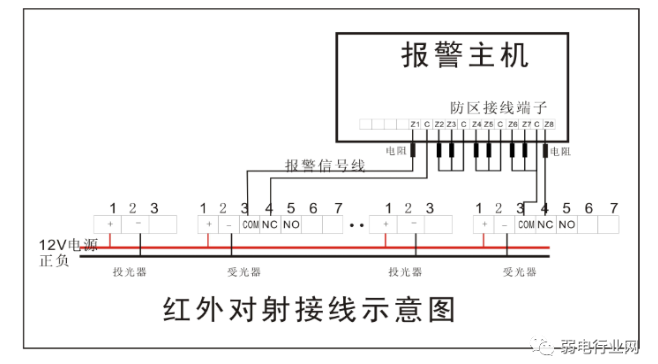 2、分线制红外对射接线图