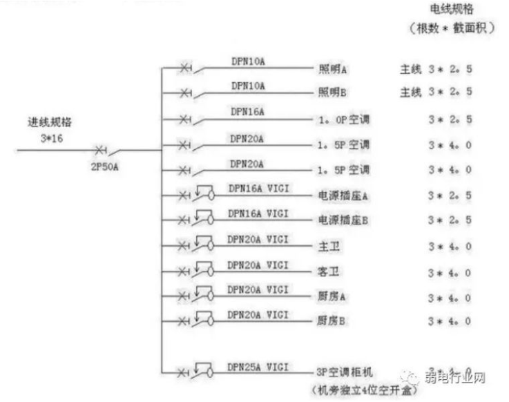 另外一条是厨房,满足:照明、油烟机、燃气热水器、消毒柜、冰箱、微波炉同时使用。