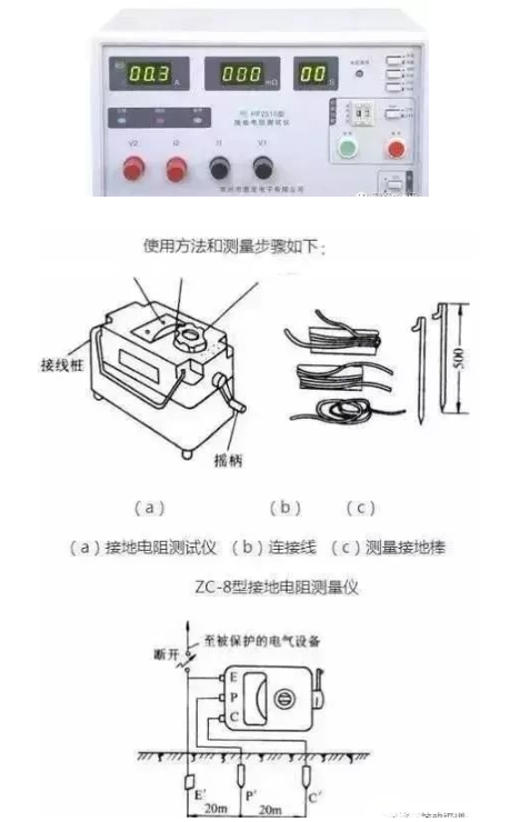 (3)用一根连接线连接表上接线桩P和离接地体20m远的接地棒P。