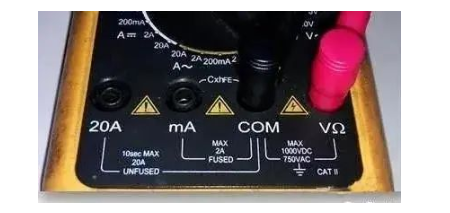 (1)将红色表笔插入COM插孔,黑色表笔插入mA插孔;(如图16所示)