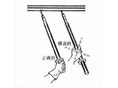 c.进行验电操作的人员要戴上符合要求的绝缘手套,并且握法要正确。如下图所示。